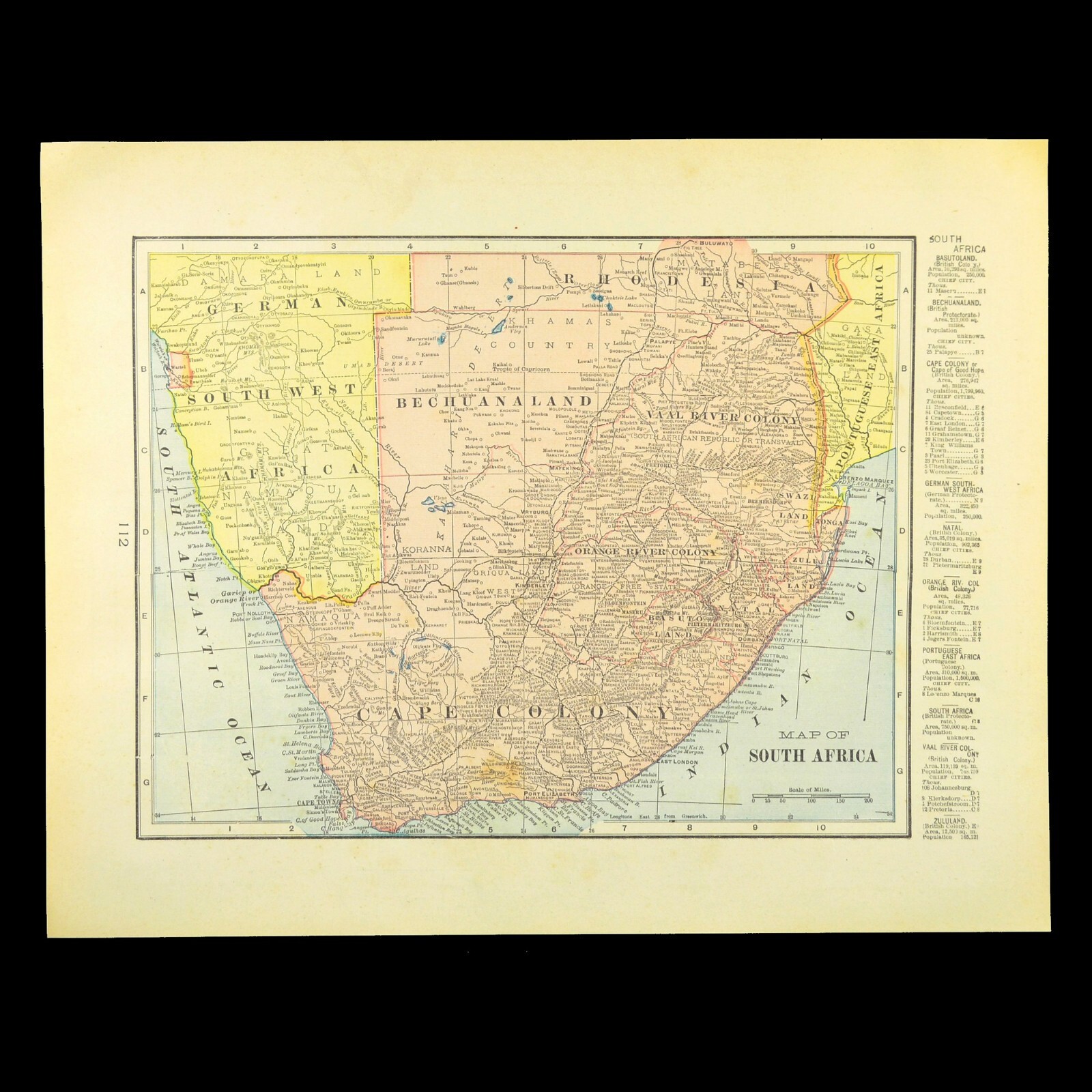 Vintage SOUTH AFRICA Map Wall Art Decor Original ca 1903 Antique
