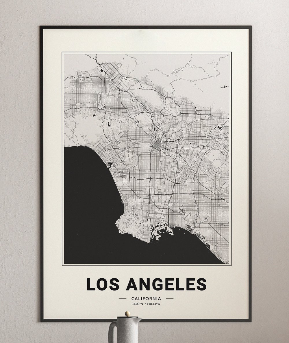 Los Angeles Map Minimalist Modern Black and White USA City Map