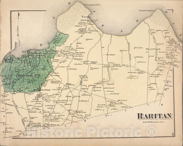 Historic 1873 Map Raritan [Township] Monmouth Couty (N.J.